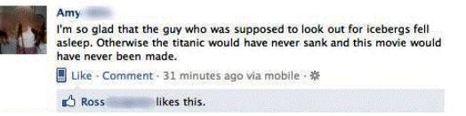 Thats cold, man. You're an Icehole. You cold hearted person. Just cool down, Titanic isnt that great of a movie. :D